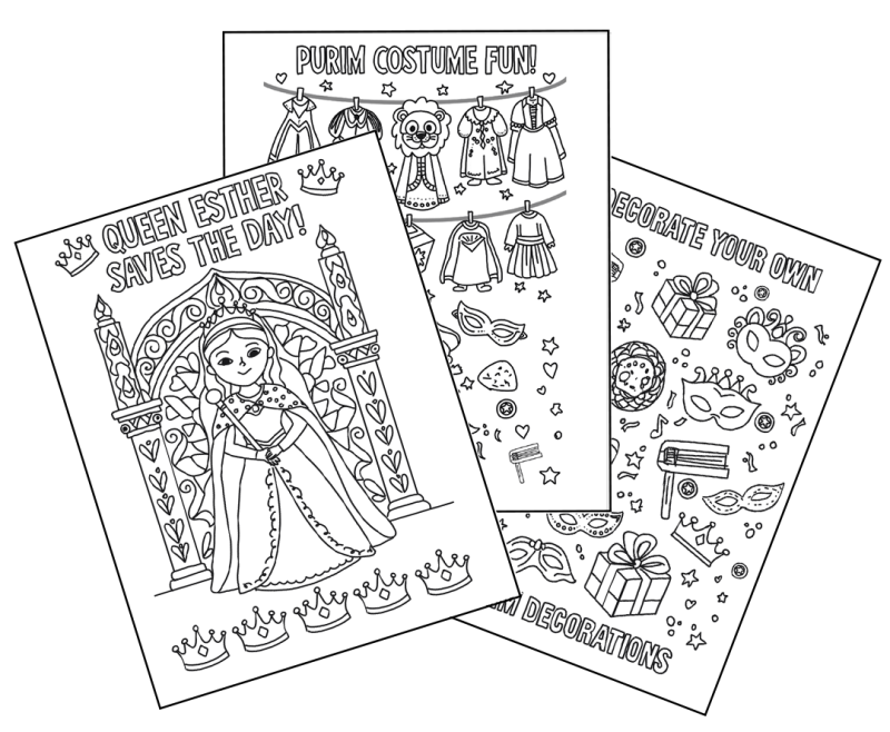 For a small donation of just $5, you can download our set of 10 high-quality Purim coloring pages.